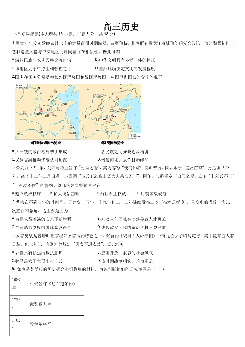 吉林省通化市梅河口五中2024-2025学年下学期高三一模测试历史+答案