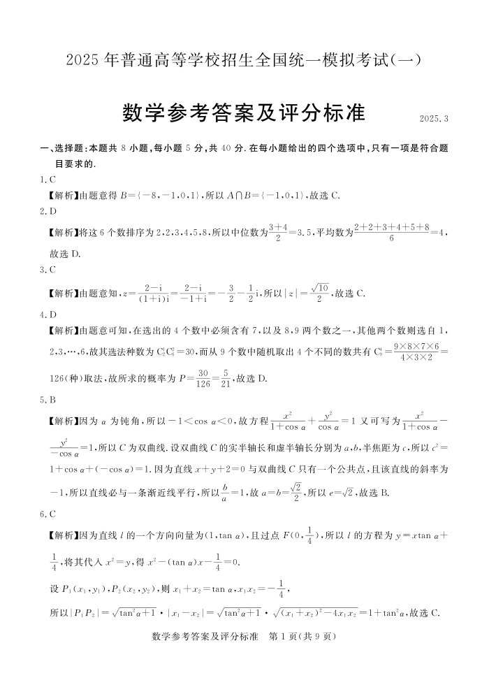 河北省承德+张家口市2024-2025学年下学期高三一模考试数学答案