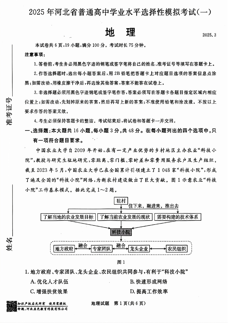 河北省承德+张家口市2024-2025学年下学期高三一模考试地理