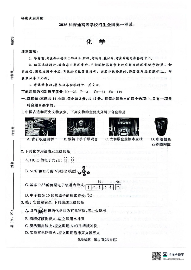 河南省区域高中2024-2025学年下学期3月高三月考化学+答案
