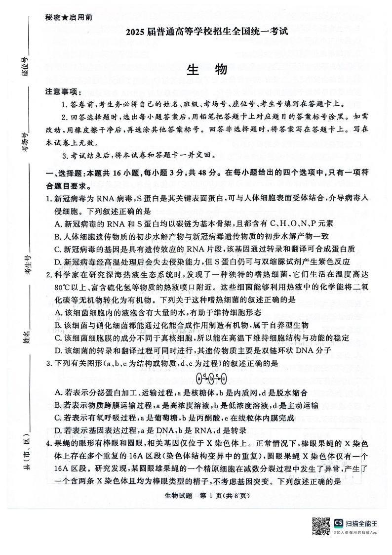 河南省区域高中2024-2025学年下学期3月高三月考生物+答案
