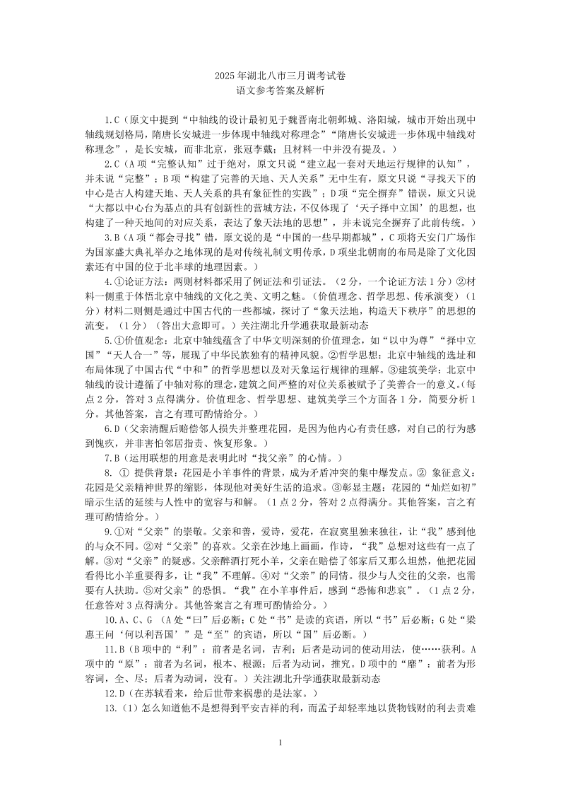 湖北省八市2024-2025学年下学期3月高三联考语文解析