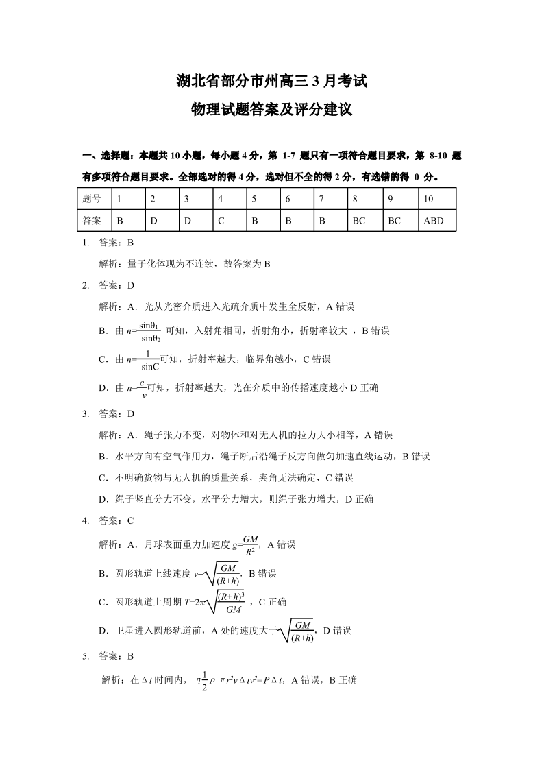 湖北省八市2024-2025学年下学期3月高三联考物理答案