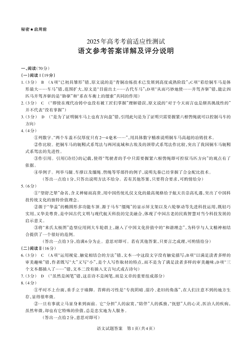 山西省区域高中2024-2025学年下学期3月高三适应性测试语文答案