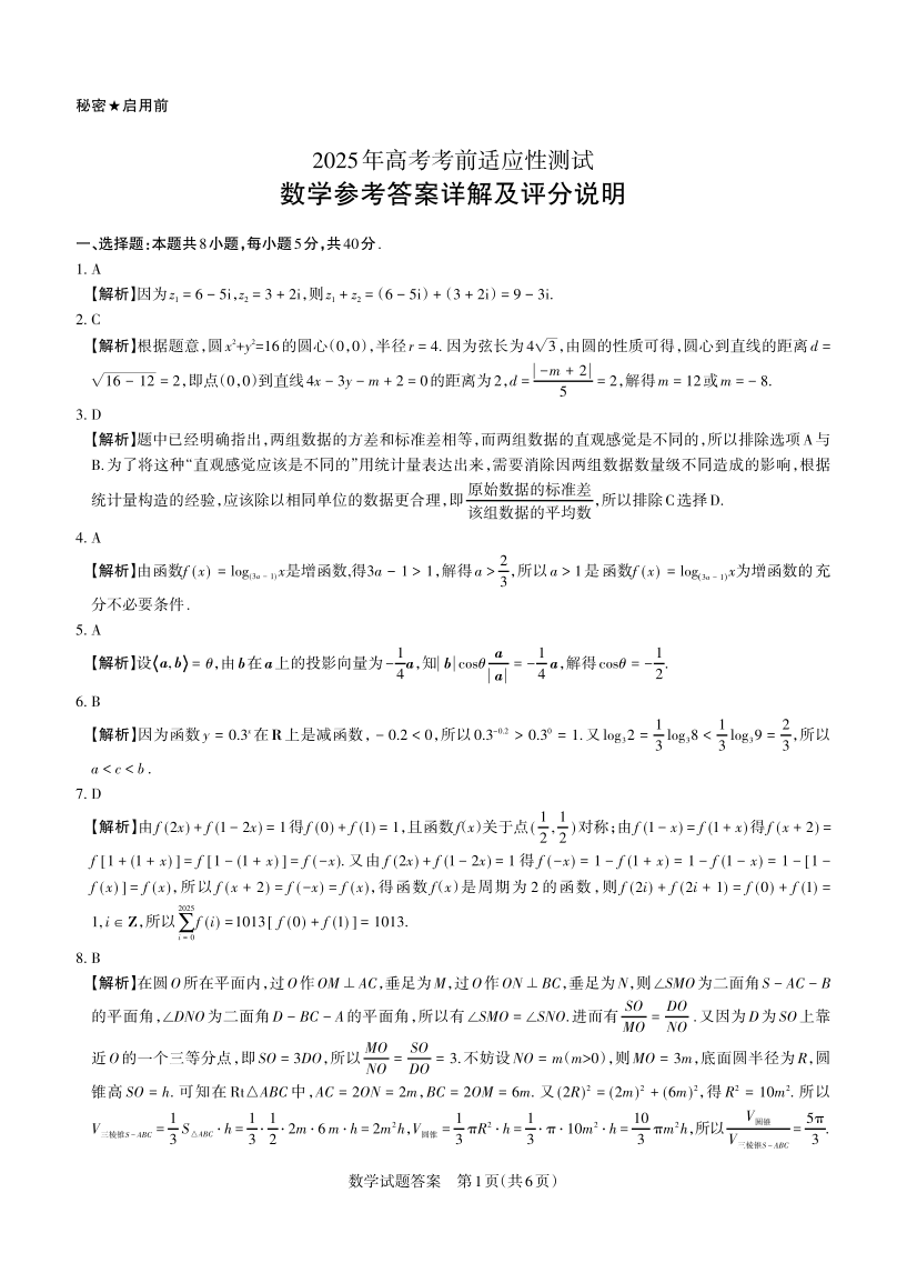 山西省区域高中2024-2025学年下学期3月高三适应性测试数学答案