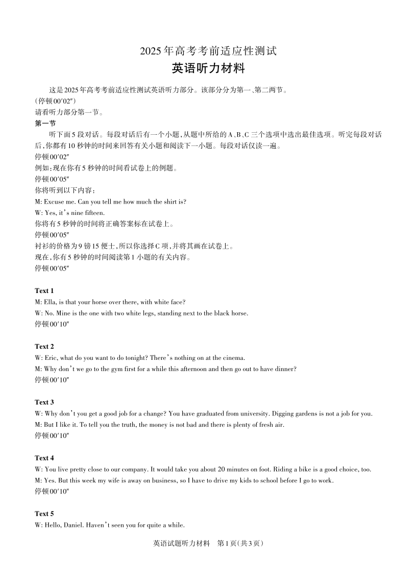 山西省区域高中2024-2025学年下学期3月高三适应性测试英语听力材料