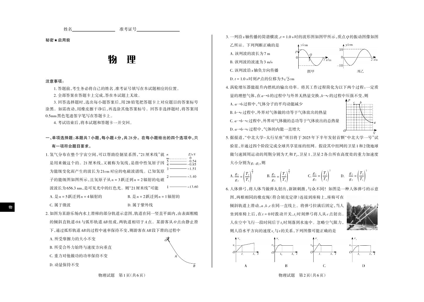 山西省区域高中2024-2025学年下学期3月高三适应性测试物理