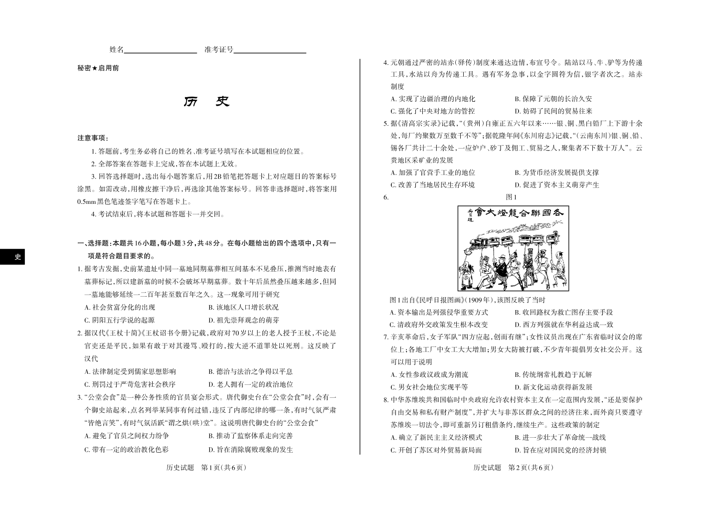 山西省区域高中2024-2025学年下学期3月高三适应性测试历史