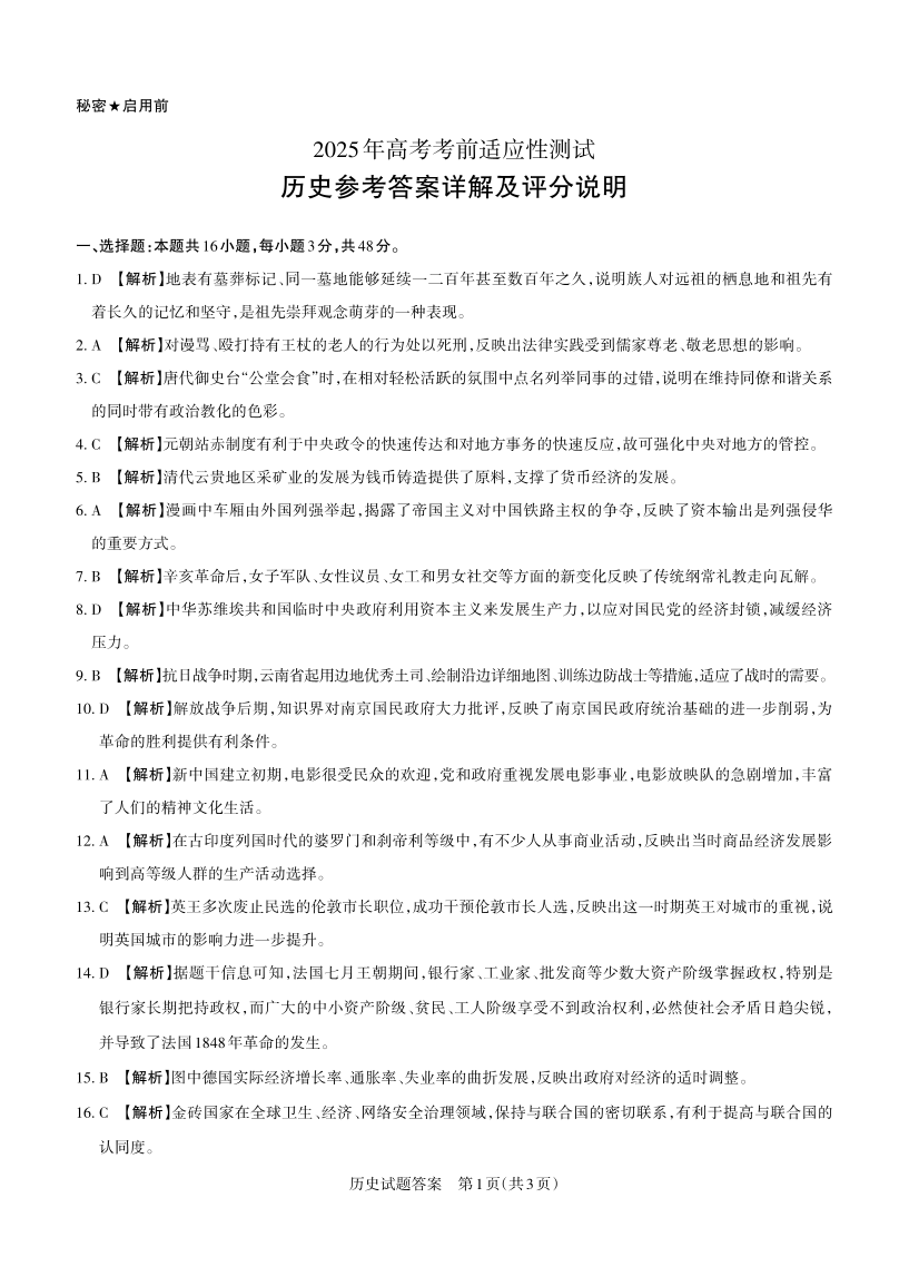 山西省区域高中2024-2025学年下学期3月高三适应性测试历史答案