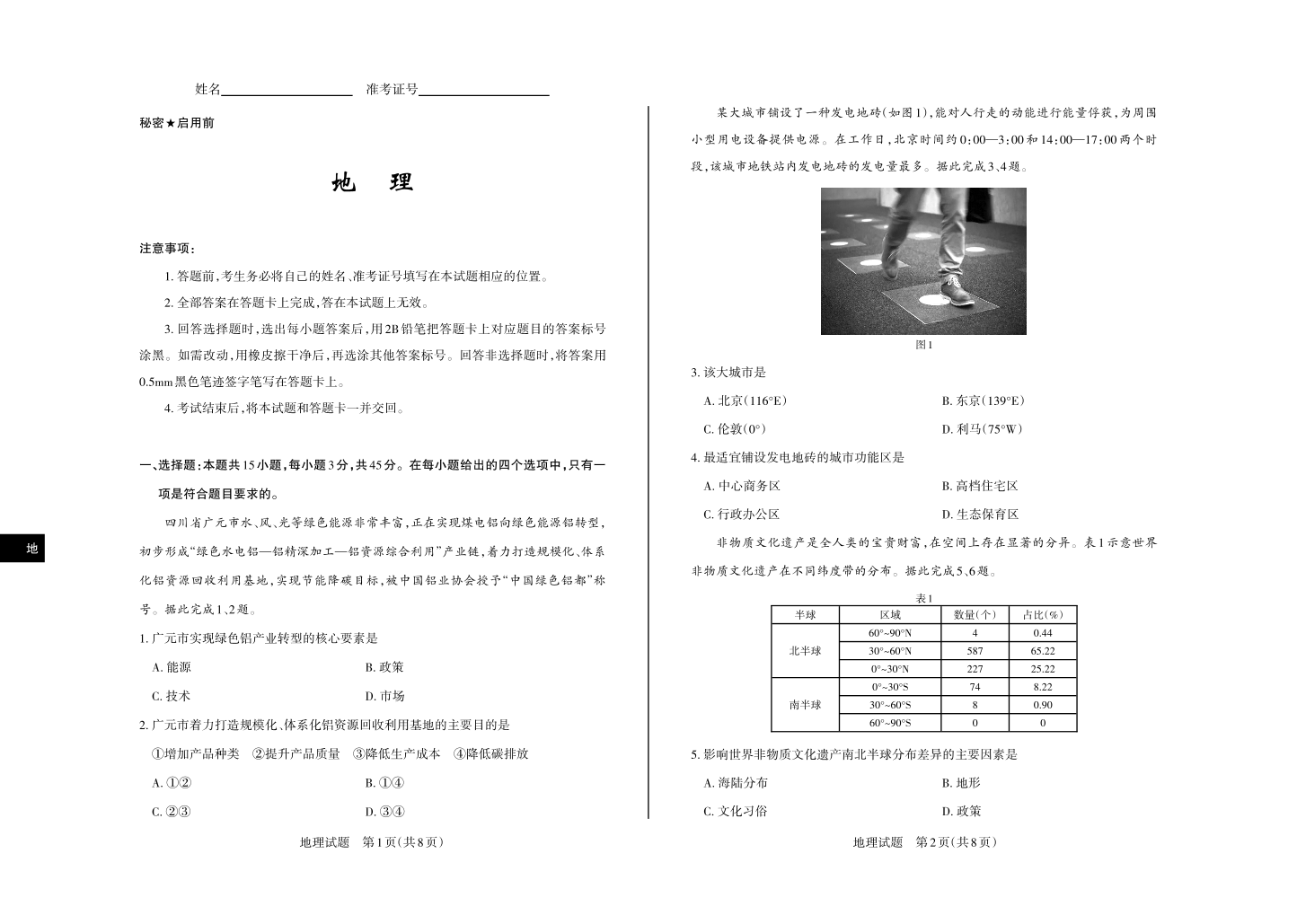 山西省区域高中2024-2025学年下学期3月高三适应性测试地理
