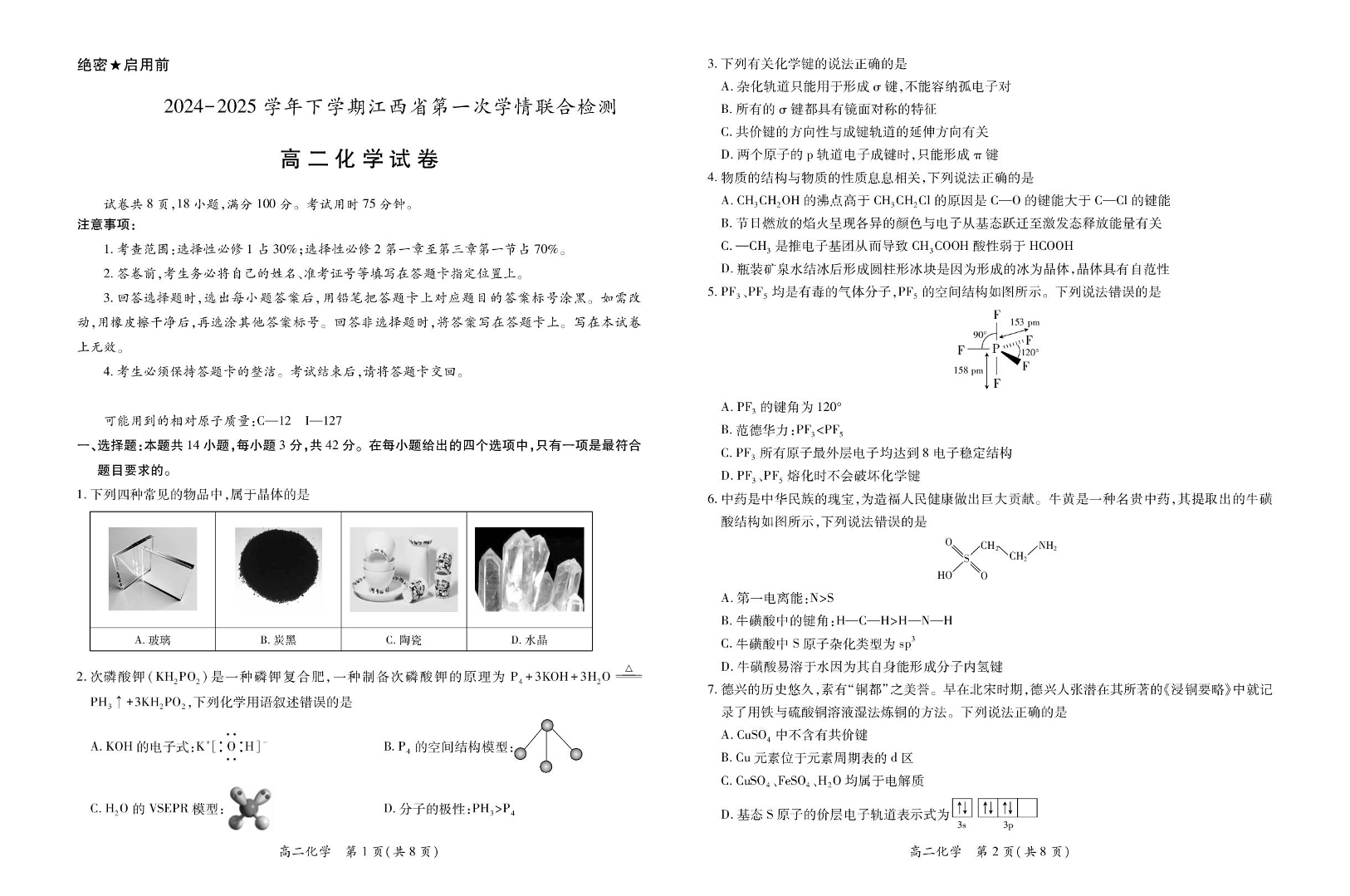 江西省上进联考2024-2025学年下学期3月高二学情联合检测化学