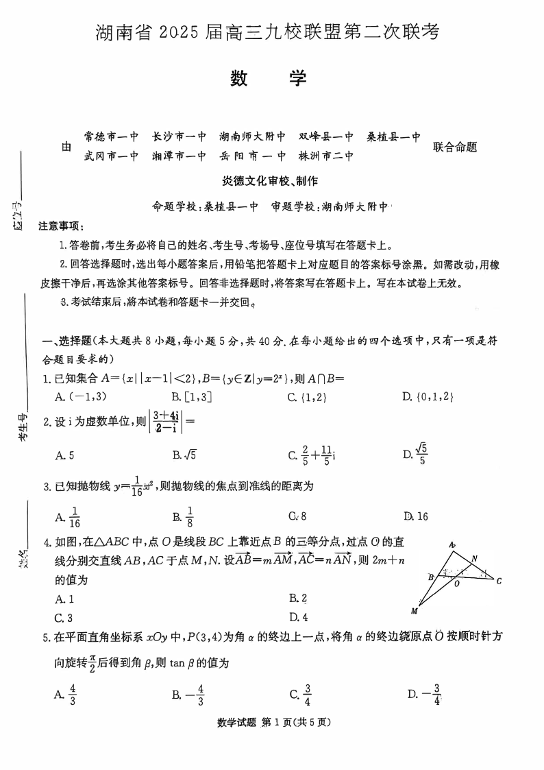 湖南省湘东九校2024-2025学年下学期高三第二次联考数学