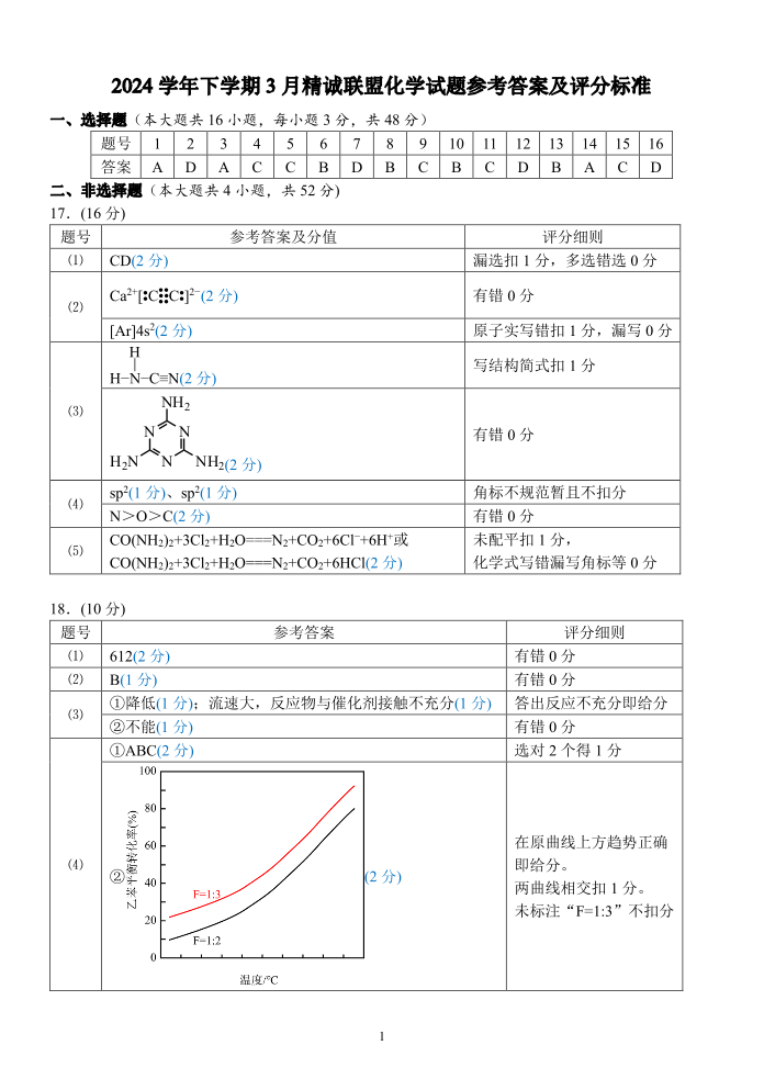浙江省精诚联盟2024-2025学年下学期3月高二月考化学答案
