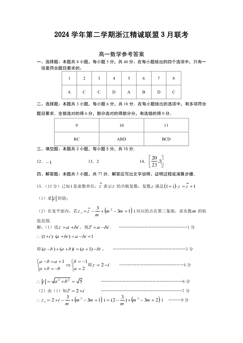 浙江省精诚联盟2024-2025学年下学期3月高一月考数学答案