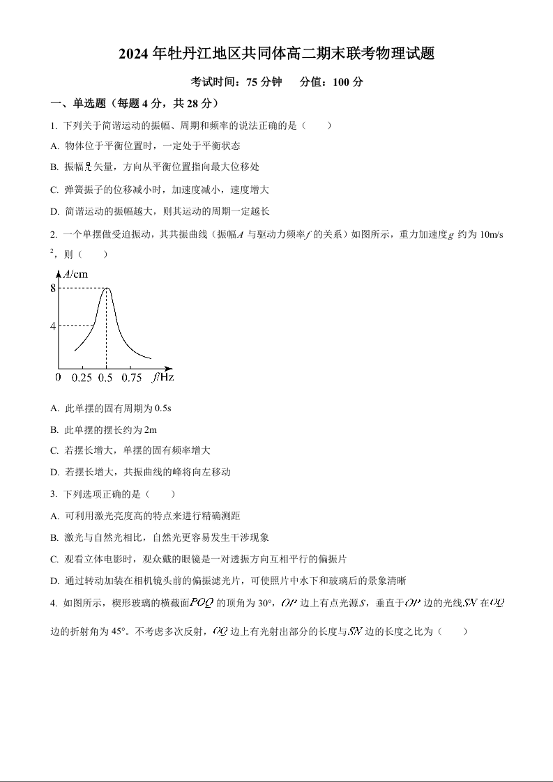 黑龙江省牡丹江地区2024-2025学年上学期1月高二期末考试物理(原卷版)