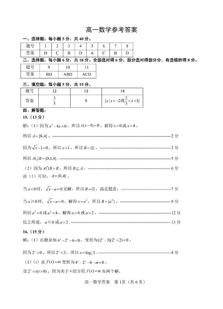 山东省威海市2024-2025学年上学期1月高一期末考试数学答案