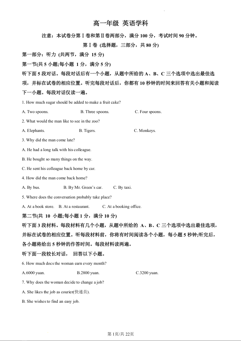 天津市红桥区2023-2024学年高一上学期11月期中考试英语(精品解析版)