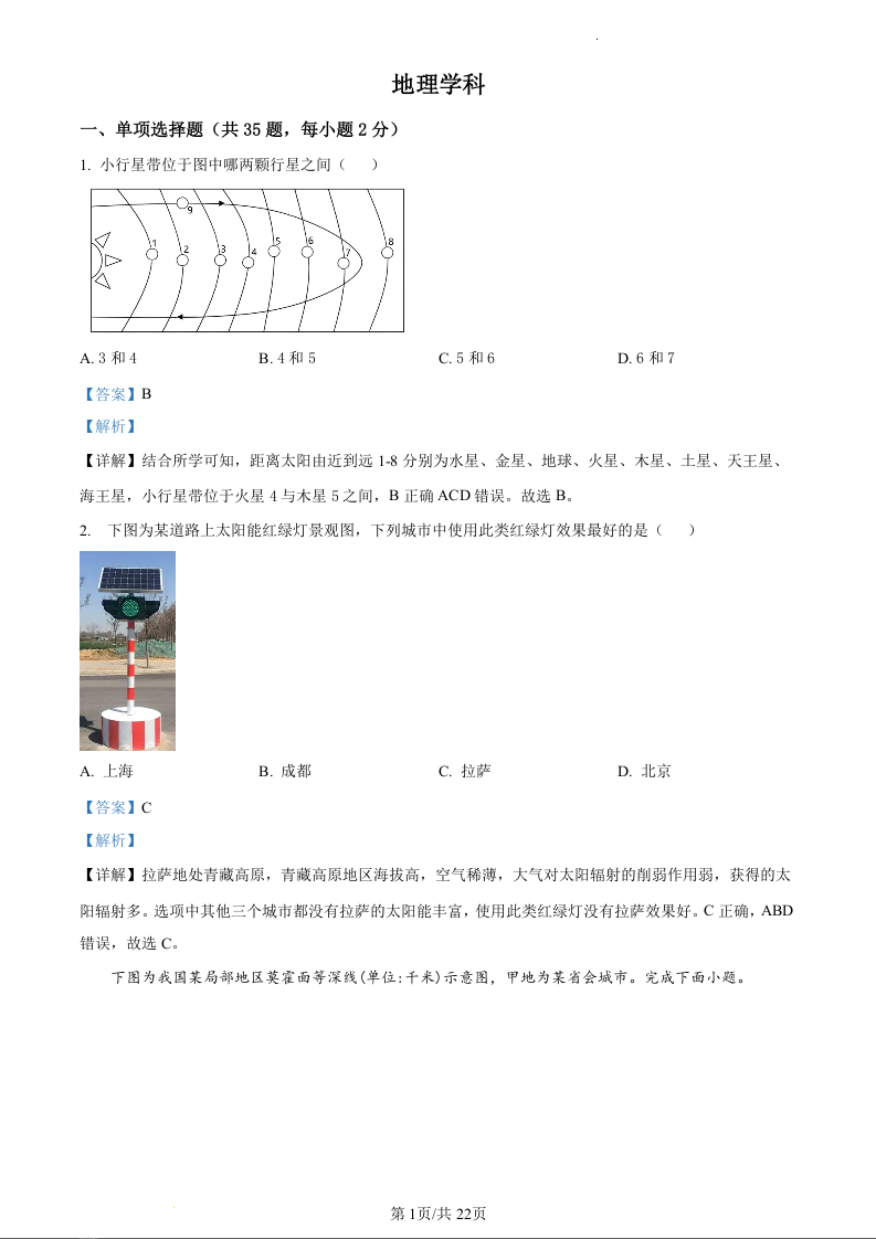 天津市红桥区2023-2024学年高一上学期11月期中考试地理(精品解析版)