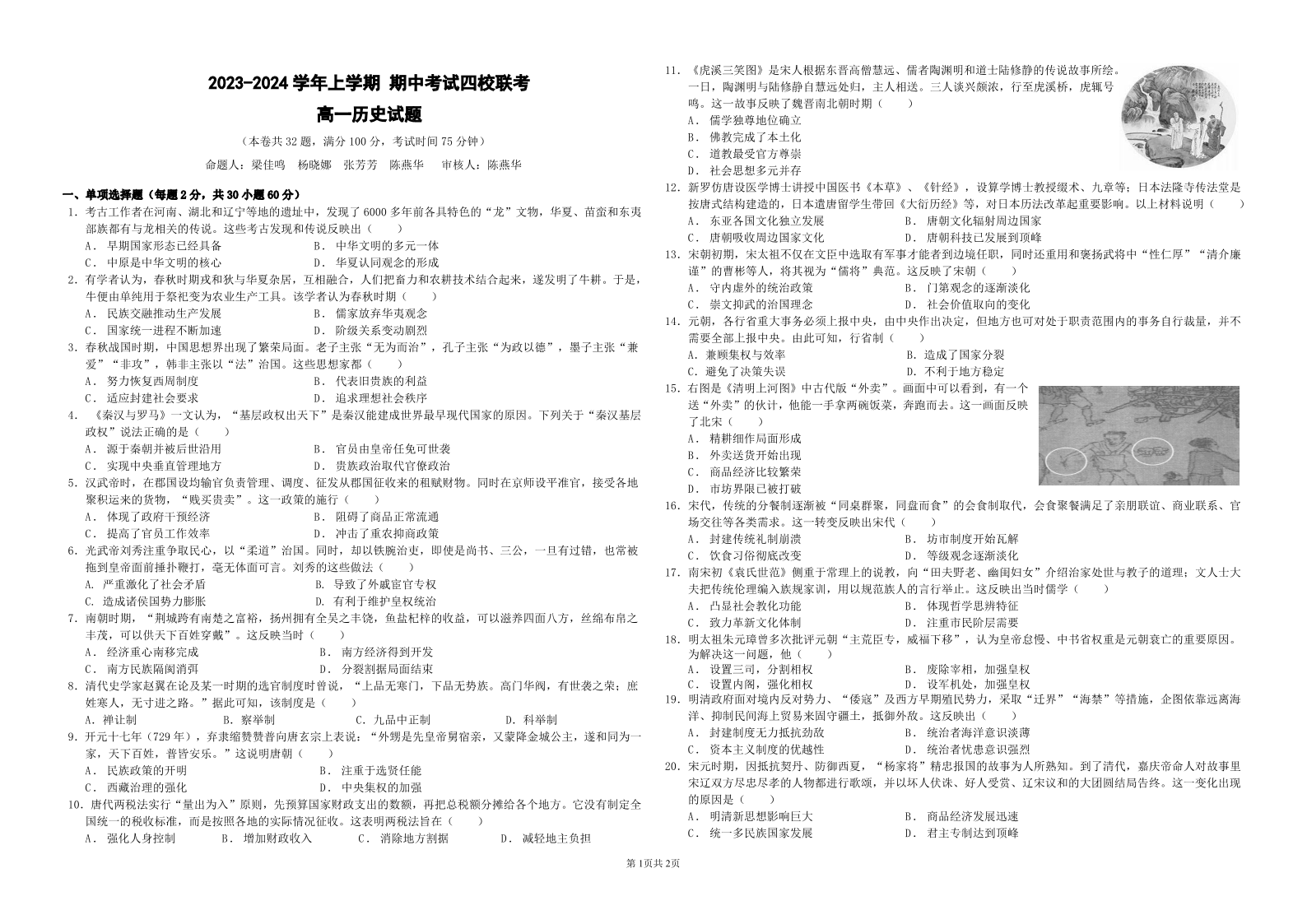 广东省东莞市四校2023-2024学年高一上学期12月期中联考历史