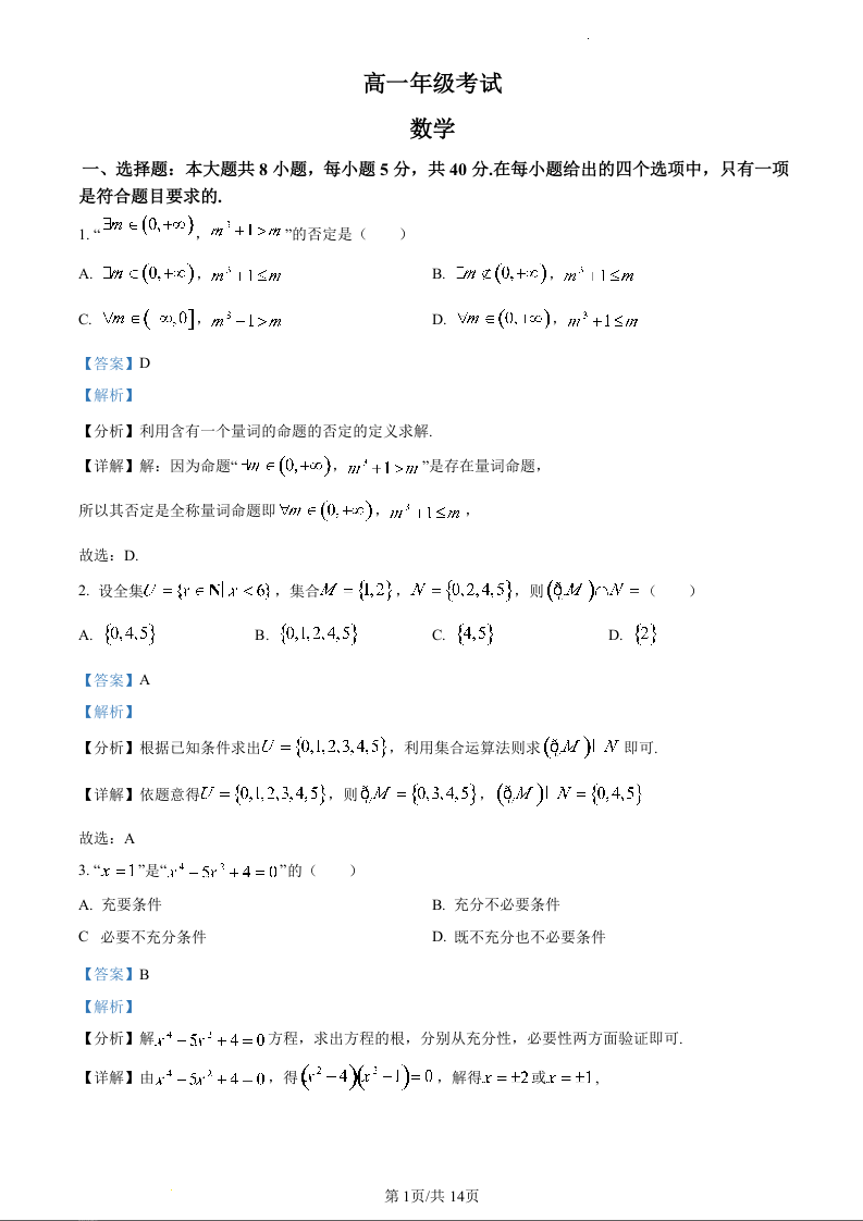 贵州省2023-2024学年高一上学期12月月考数学(精品解析版)