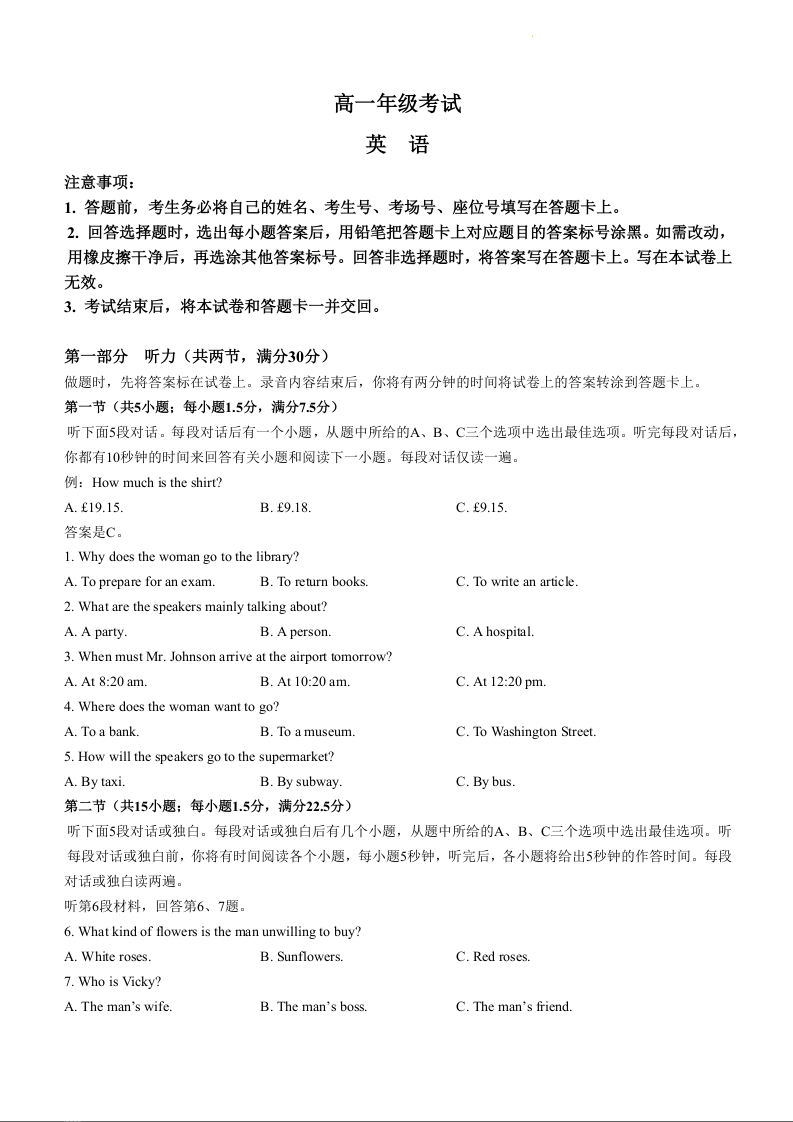 贵州省2023-2024学年高一上学期12月月考英语+答案