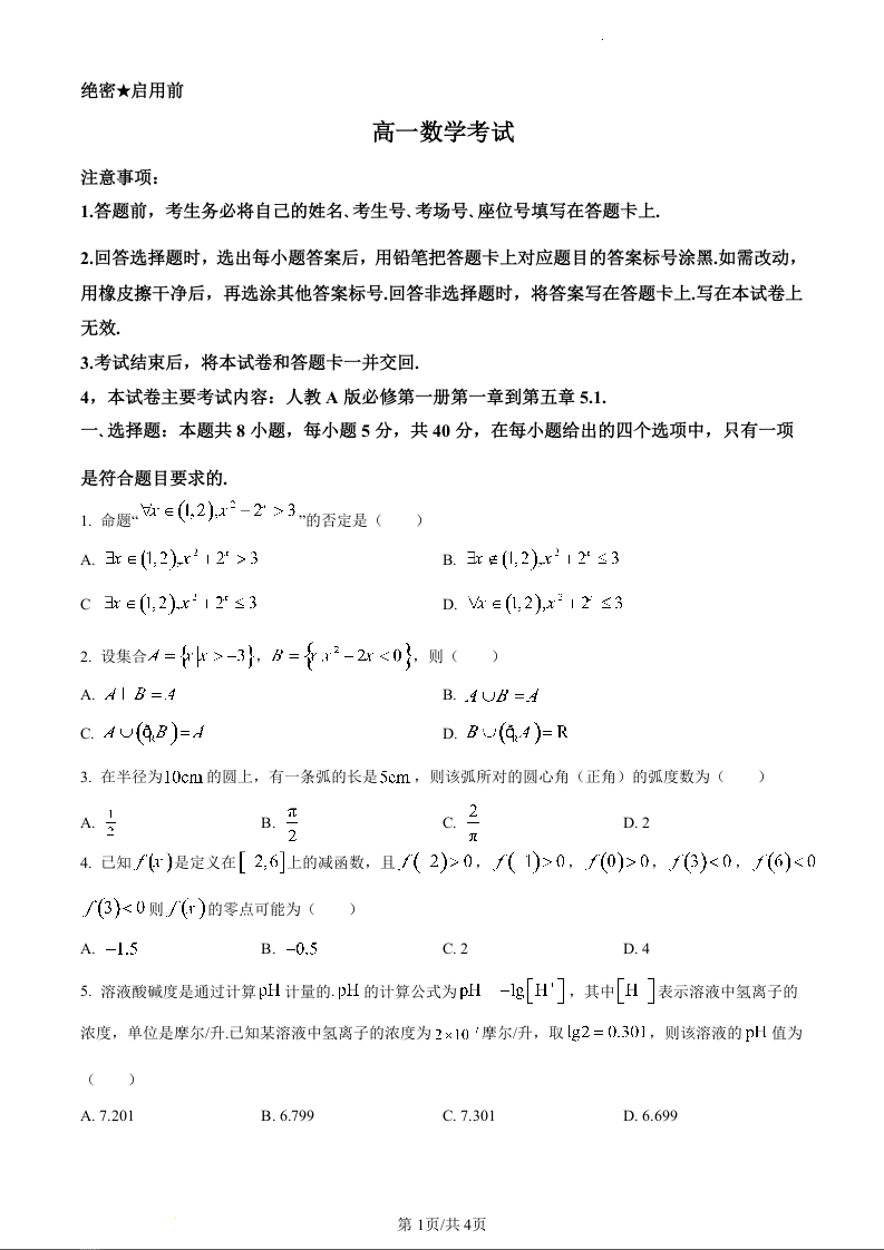 河北省保定市部分高中2023-2024学年高一上学期12月期中考试数学(原卷版)