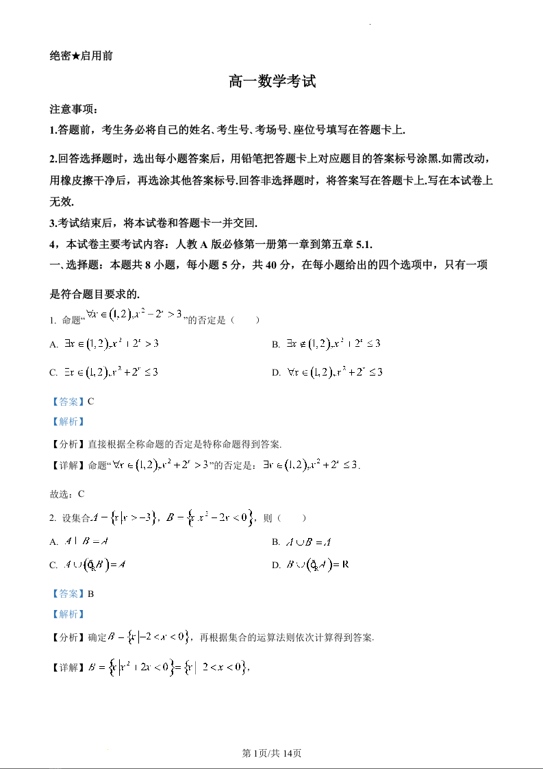 河北省保定市部分高中2023-2024学年高一上学期12月期中考试数学(精品解析版)