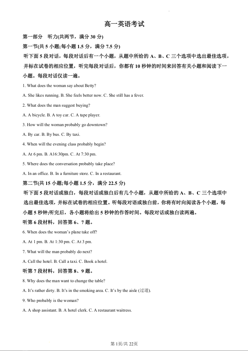 河北省保定市部分高中2023-2024学年高一上学期12月期中考试英语(精品解析版)