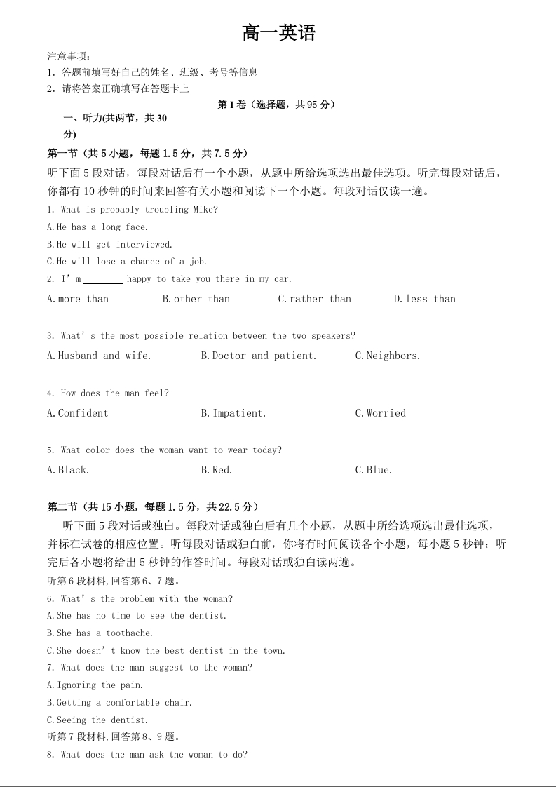 河南省南阳市第一中学校2023-2024学年高一上学期12月月考英语