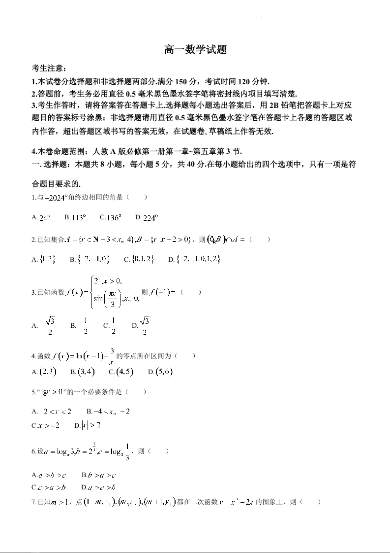 河南省新乡市九师联盟2023-2024学年高一上学期12月月考数学