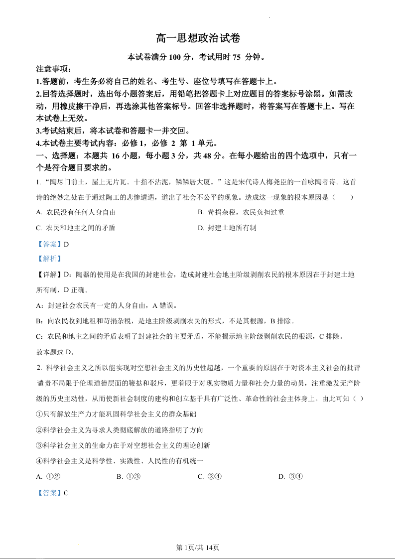 吉林省2023-2024学年高一上学期12月月考政治(精品解析版)
