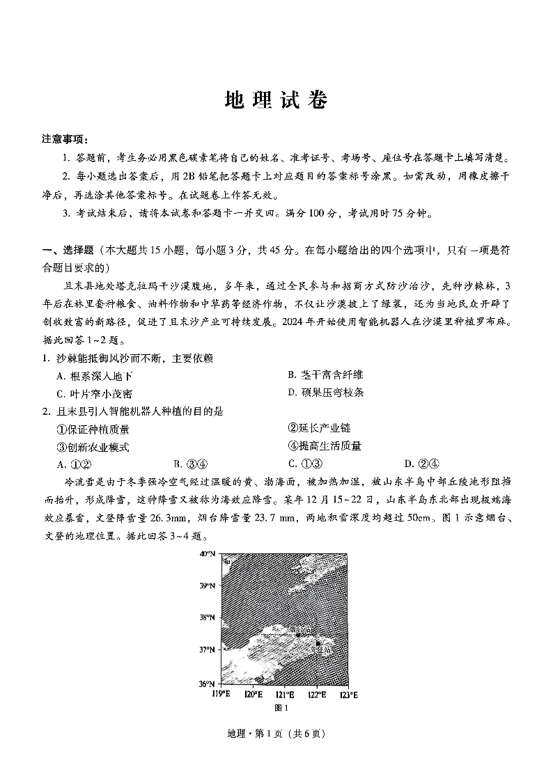 重庆市巴蜀中学2024-2025学年下学期高三适应性月考(六)地理