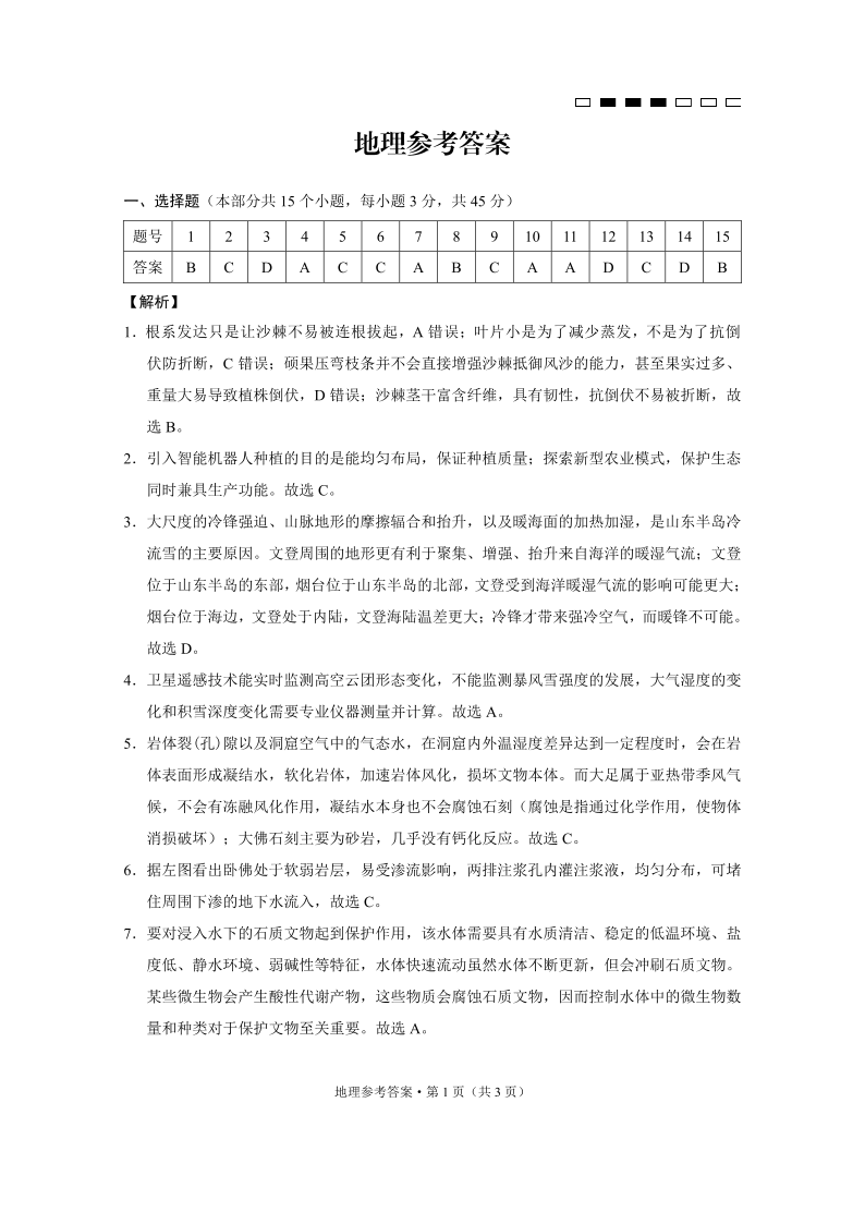 重庆市巴蜀中学2024-2025学年下学期高三适应性月考(六)地理答案