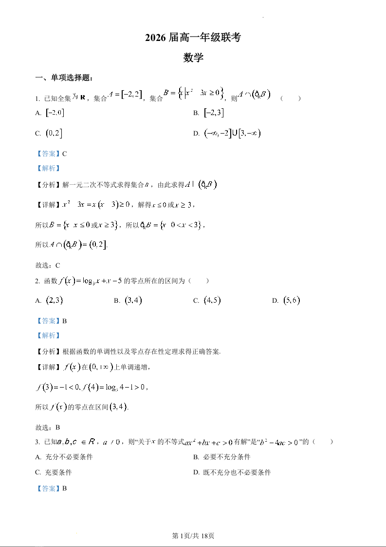 江苏省苏南八校2023-2024学年高一上学期12月联考数学(精品解析版)