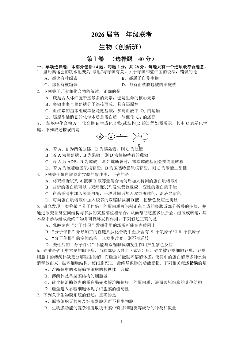 江苏省苏南八校2023-2024学年高一上学期12月联考生物+答案