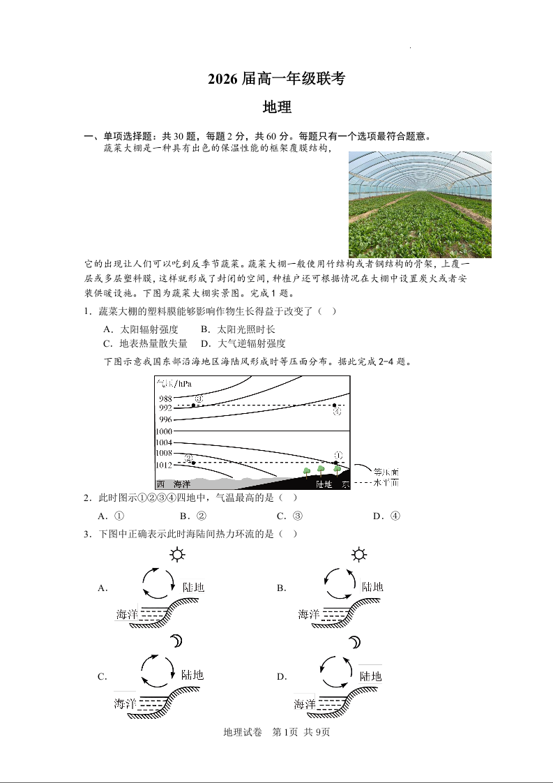 江苏省苏南八校2023-2024学年高一上学期12月联考地理