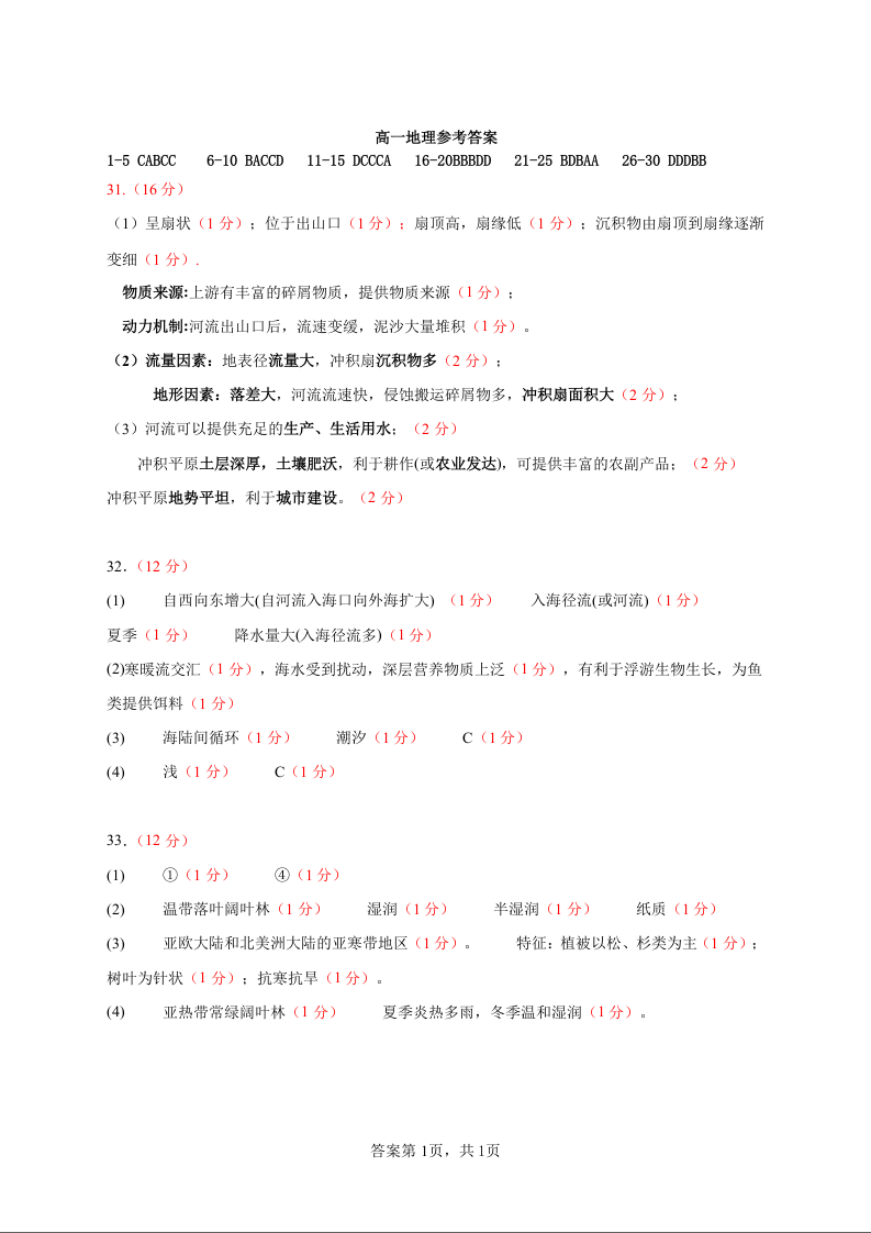 江苏省苏南八校2023-2024学年高一上学期12月联考地理答案