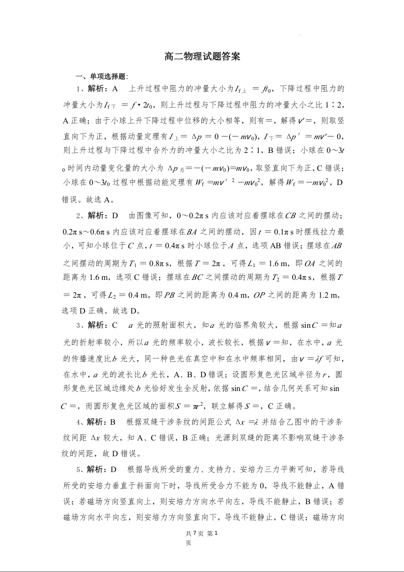 湖北省随州市区域2024-2025学年下学期3月高二月考物理答案
