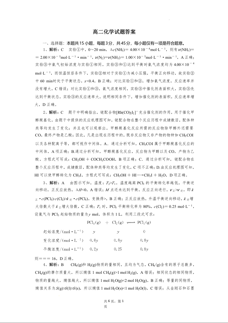 湖北省随州市区域2024-2025学年下学期3月高二月考化学答案
