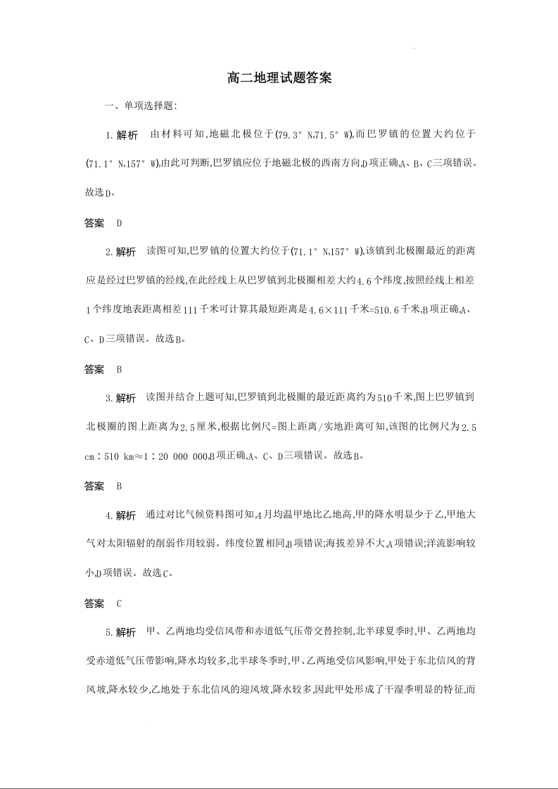 湖北省随州市区域2024-2025学年下学期3月高二月考地理答案