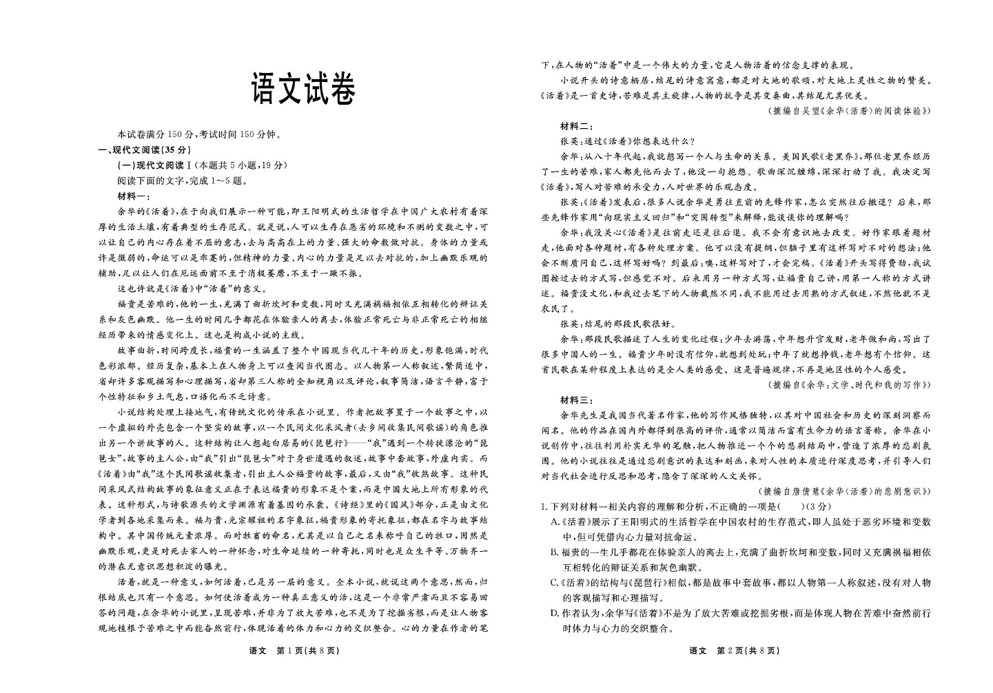 河北省衡中同卷2025届高三下学期综合素质评价(一)语文
