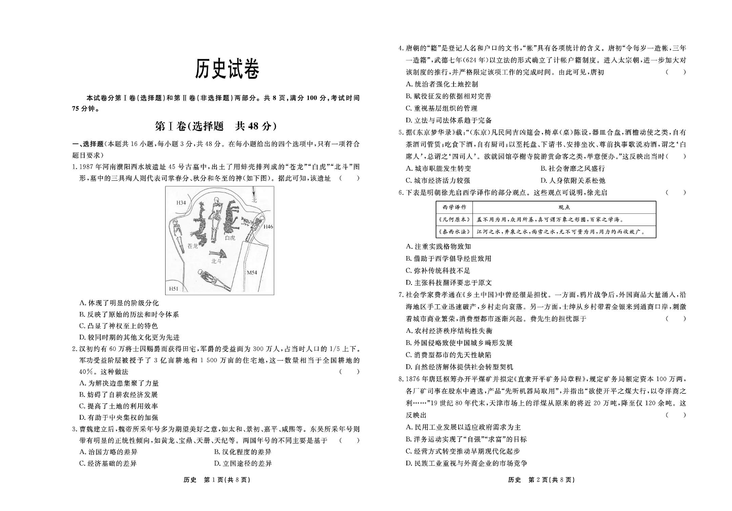 河北省衡中同卷2025届高三下学期综合素质评价(一)历史