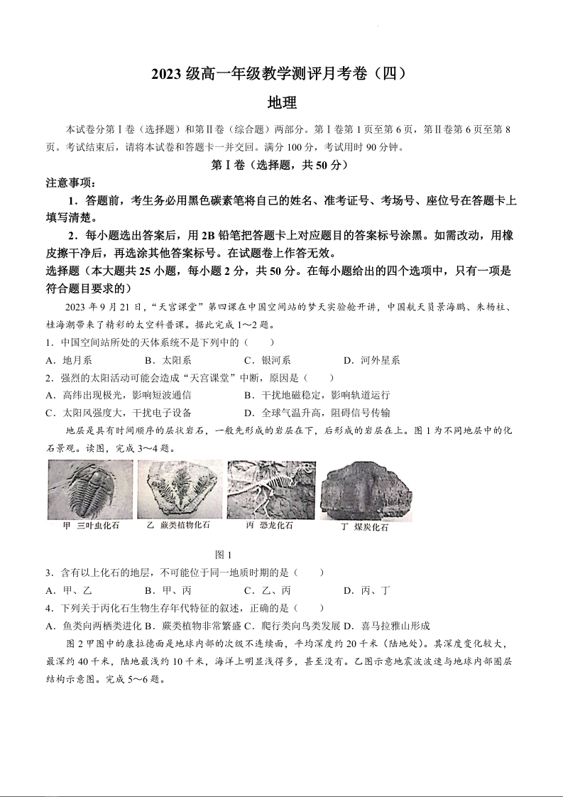 云南省昆明市云南师范大学附属中学2023-2024学年高一上学期12月月考地理+答案