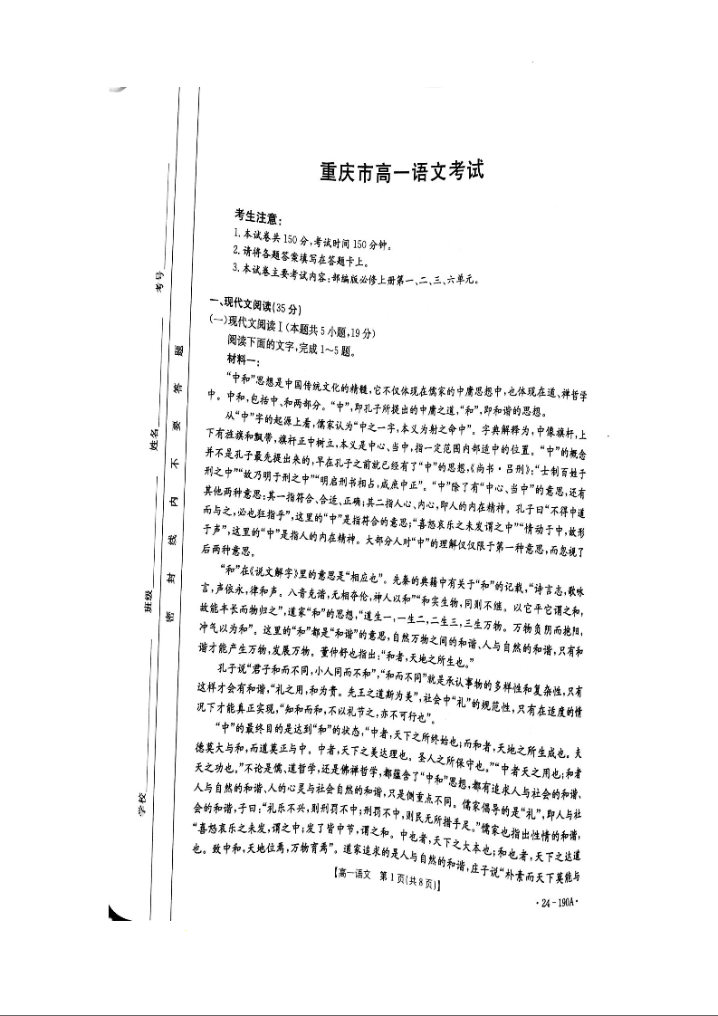 重庆市云阳县、梁平区等地 2023-2024学年高一上学期12月月考语文