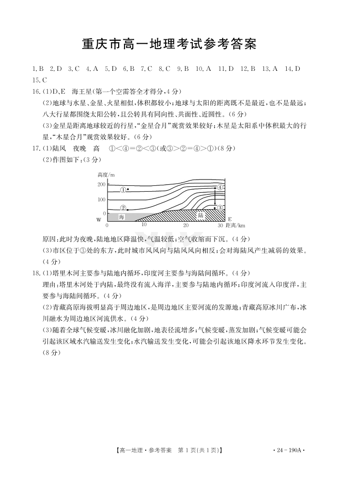 重庆市云阳县、梁平区等地 2023-2024学年高一上学期12月月考地理答案