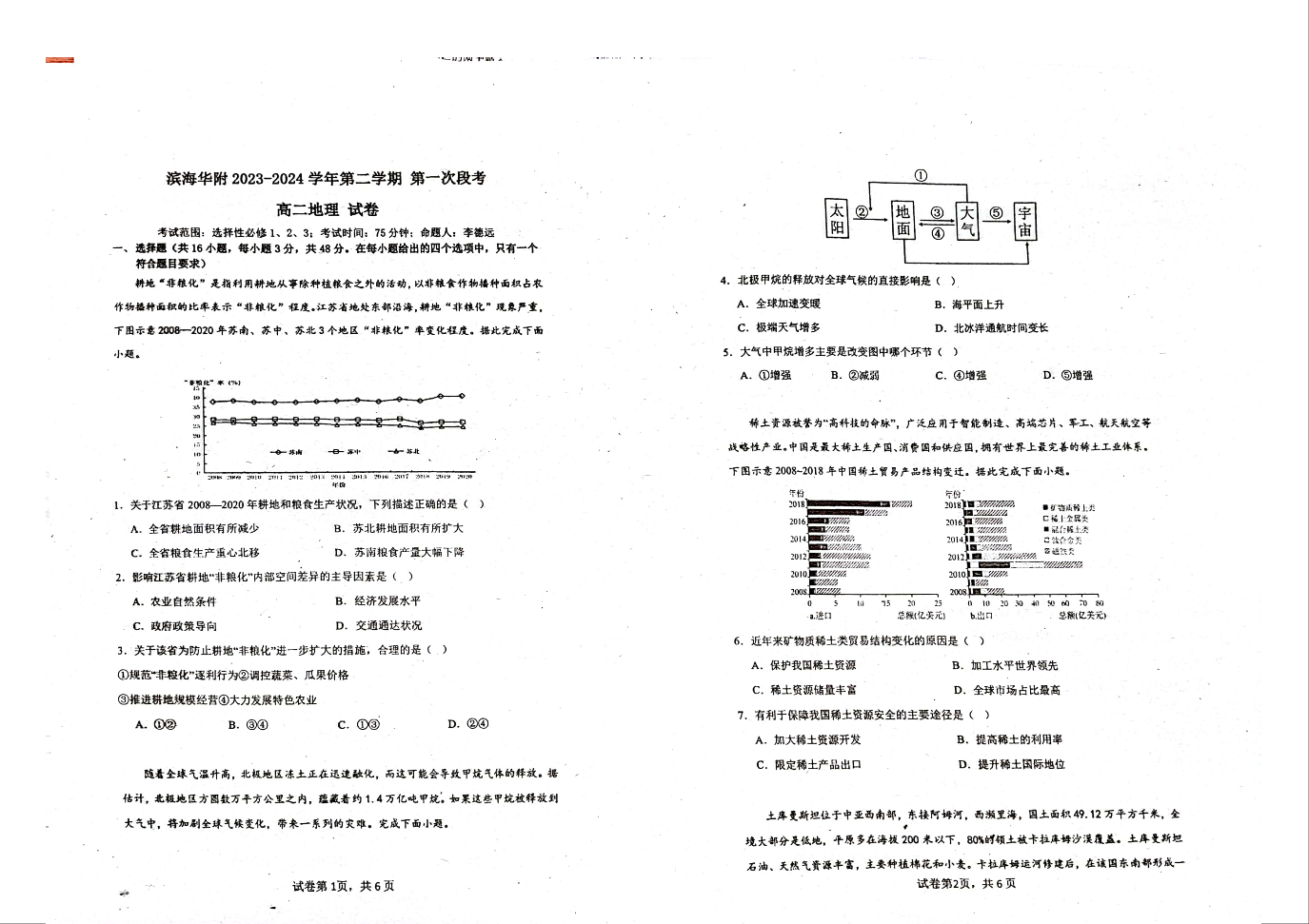 广东省华南师范大学附属茂名滨海学校2023-2024学年高二下学期4月期中考试地理