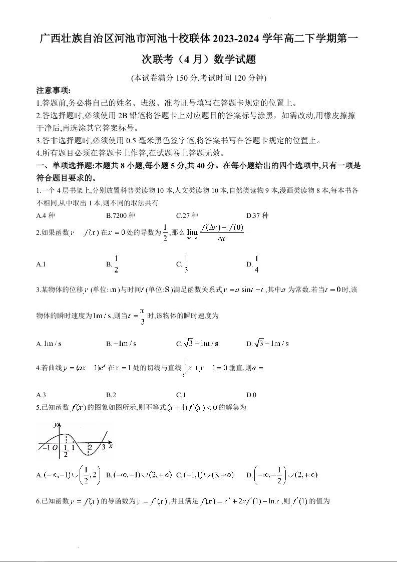 广西壮族自治区河池市十校2023-2024学年高二下学期4月联考数学