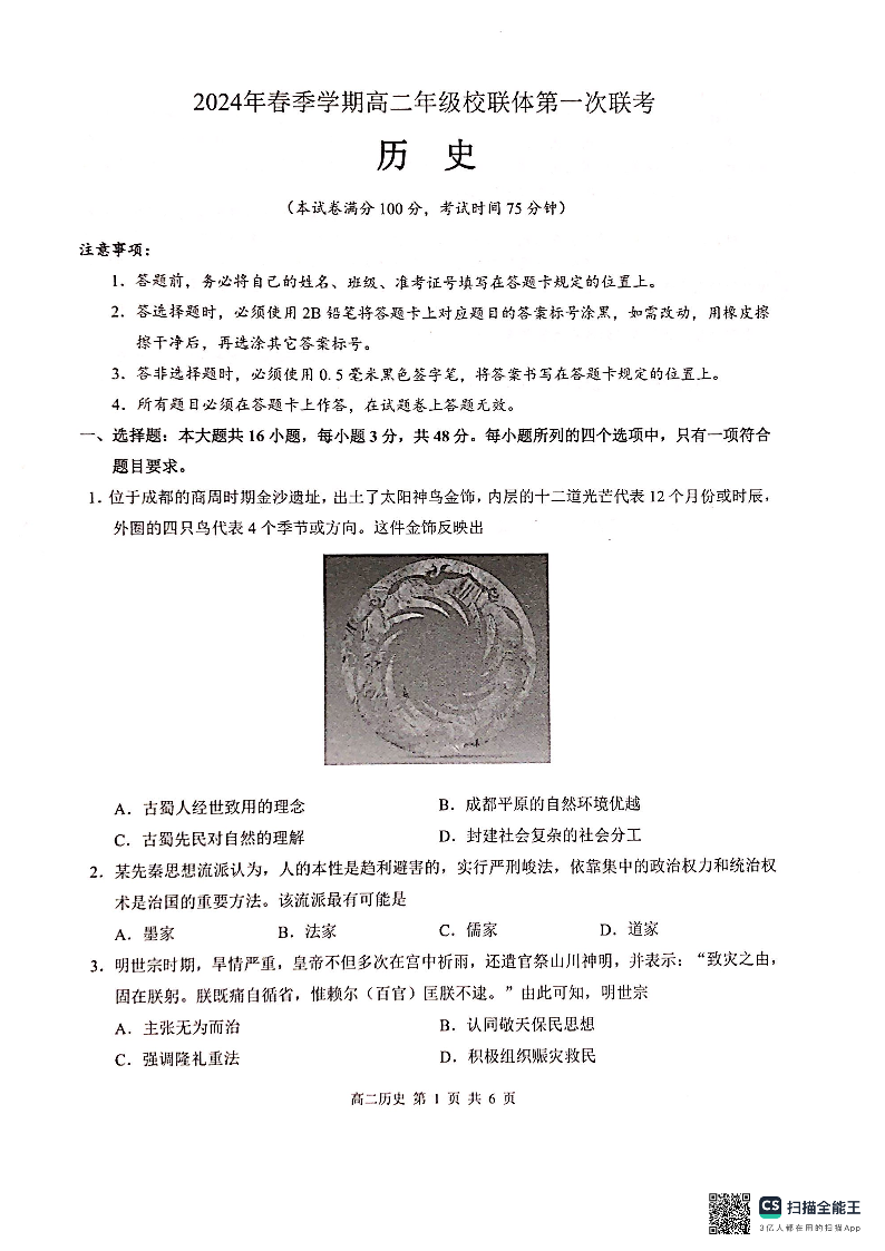广西壮族自治区河池市十校2023-2024学年高二下学期4月联考历史
