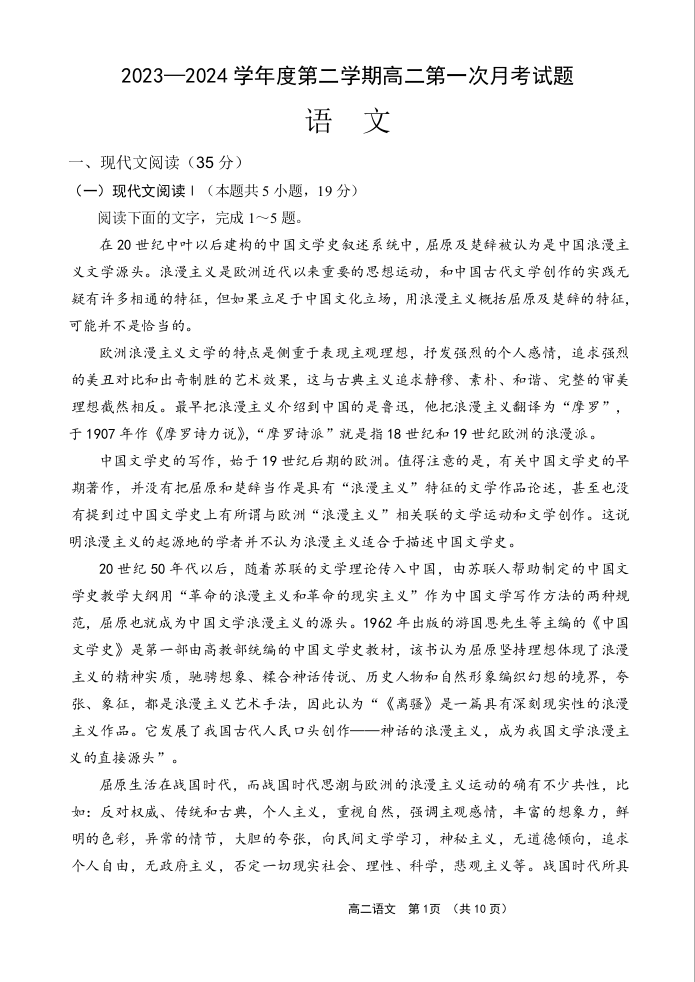 海南省文昌中学2023-2024学年高二下学期第一次月考语文
