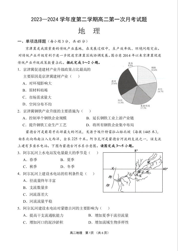 海南省文昌中学2023-2024学年高二下学期第一次月考地理